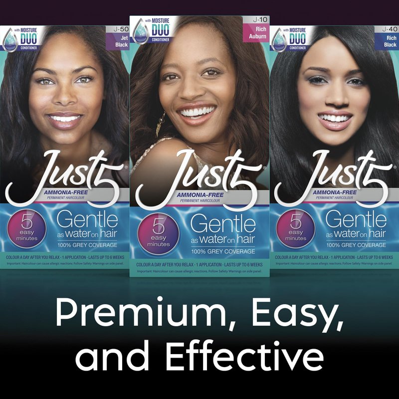 - Just 5 Women's 5 Minute Permanent Hair Color is a hair color that covers grey hair permanently in 5 easy, gentle minutes