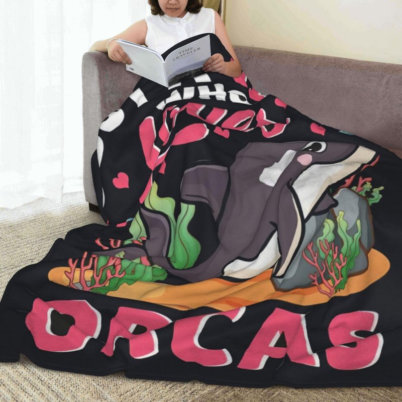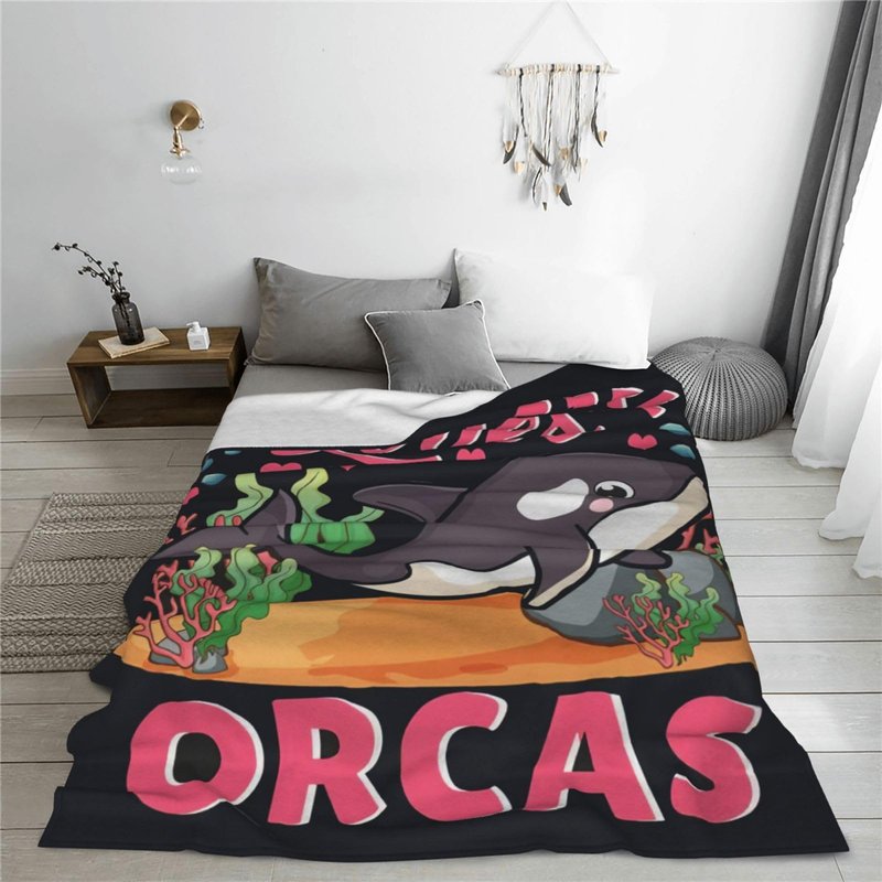 Just A Girl Who Loves Orcas Blanket Cute Orcas Decor Throw Blanket Gifts for Girls Boys Orcas Lover Super Warm Soft Plush Lightweight Fleece Flannel Bedding Blanket for Kids Adult Men Women 50"X40"