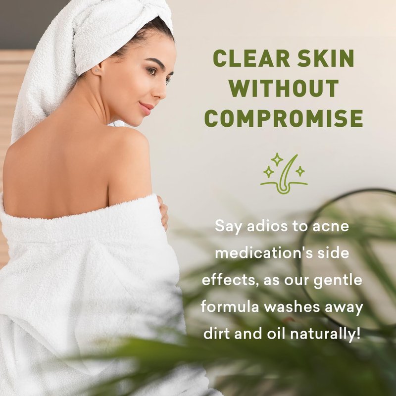 - SAY GOODBYE TO HARSH CHEMICALS AND EXPERIENCE THE GENTLE POWER OF NATURE | Improve your acne-prone skin without the side effects of acne medication. This lets your skin get better on its own without using any irritants. With nature’s power, this hypoallergenic and non-comedogenic formula will get your skin free of breakouts. Cleanse your face & body naturally without harsh ingredients like Benzoyl Peroxide, Salicylic Acid. It also has no artificial fragrance or color. Gentle for all skin types.