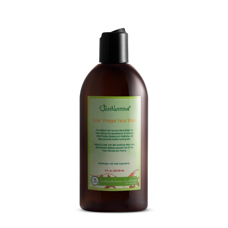- FIGHTS IRRITATION | Our Clear Vinegar Face Wash leaves your skin feeling clean and refreshed with pure nutritive ingredients. Licorice Root and Aloe Vera extracts have a nourishing effect and help calm irritation and redness. Nourishes red, irritated or itchy skin, and helps protect sensitive pimple prone skin. Our gentle face wash repairs damaged skin and eases redness while fading blemishes.