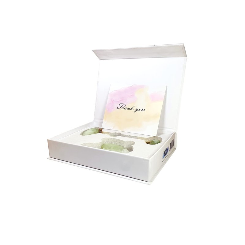 What are the benefits of Jade Roller and Gua Sha?Maximize the absorption of the facial oil, Jade stone remains cool to the touch and can help provide anti-aging benefits, Preppy stuff reduce your fine lines and wrinkles, help you to relax and calm the muscle tension, relaxation and improving lymphatic flow throughout the body and it is much easier to do, making your practice more consistent. How to use a Jade Roller?1. Before you start massaging, clean your skin and add product to your face.2. Use the small ice roller part under the eyes, around the nose and mouth and forehead.3. The large roller for jawline, face and chin. How to use Gua Sha?1. Starting at the base of your neck, use the flat stone gua sha tool and move upwards towards your chin.2. Pressed along your face or body, and applying a good amount of pressure. 3. Not only for the face, Gua sha tool can massage your whole body for relaxing and promote the blood circulation for arms and legs. Note:Clean your Jade Roller and Gua Sha before and after use, use it with creams, moisturizer, and other skin care products, it is best to put it in the box to prevent it from accidentally falling. Package Included:1* Jade Roller2* Gua Sha3* Thank You Card4* Packaging Box