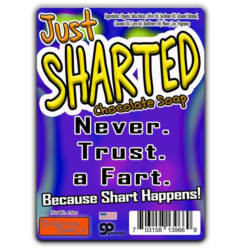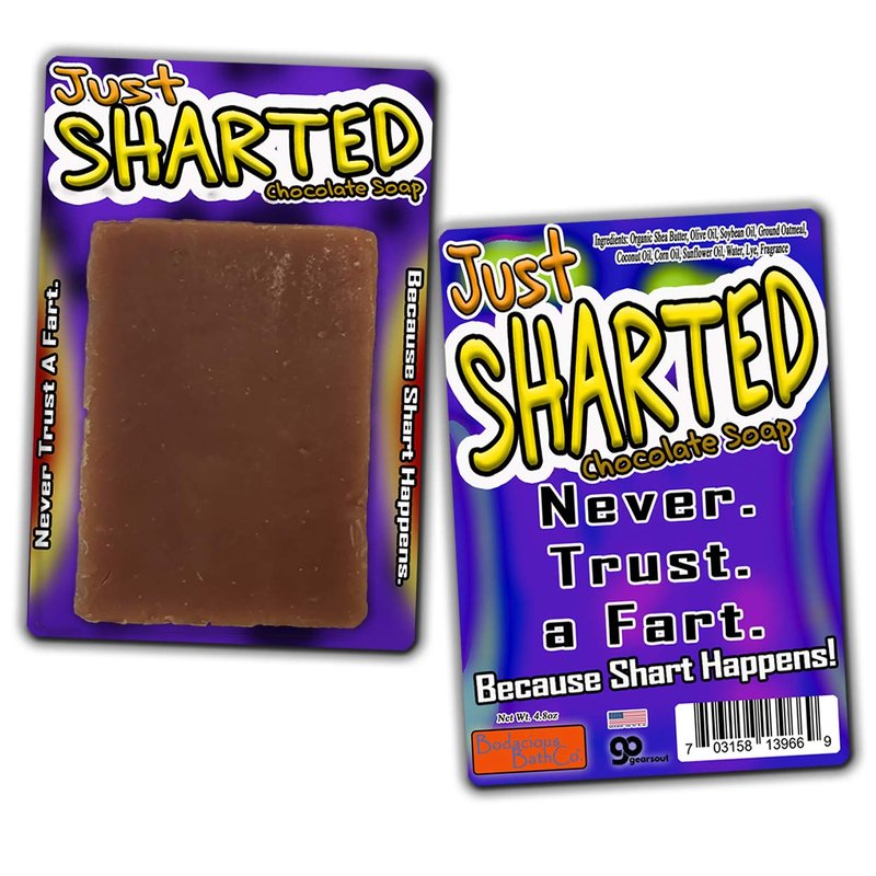 - WELL, THAT WAS WETTER THAN EXPECTED – Just Sharted Chocolate Soap was developed specifically for anyone who trusted a toot and wound up releasing some chocolate thunder. Let the delectably sweet, chocolate aroma wash away the evidence of your shartastic shame and pretend it never happened.