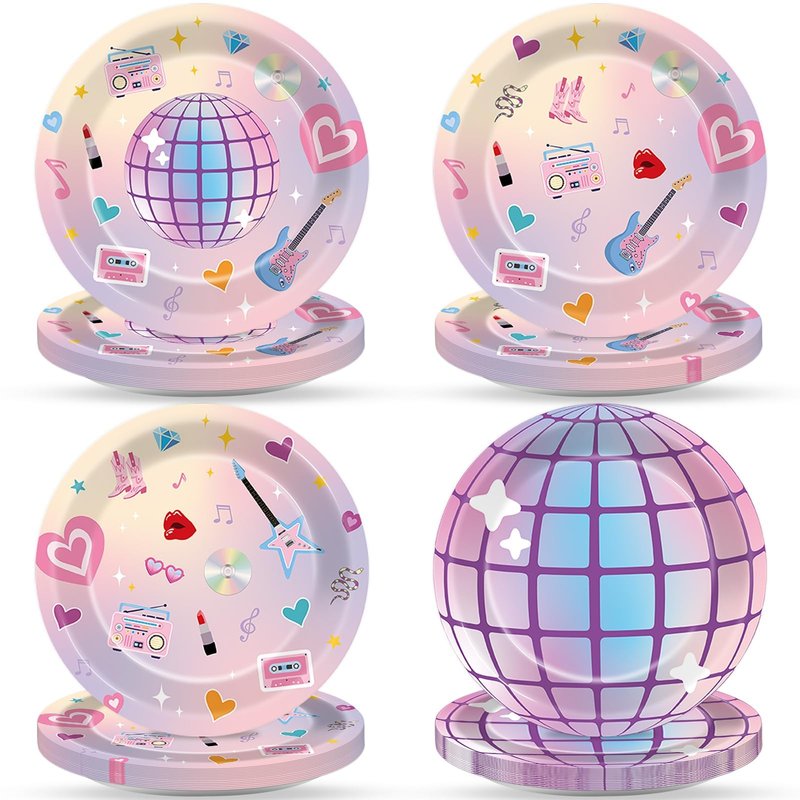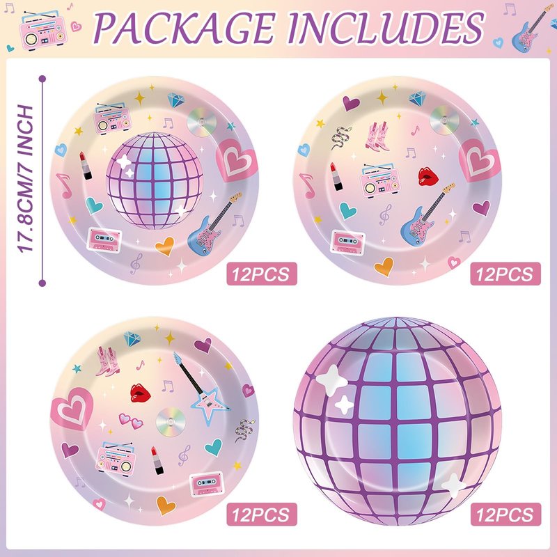- Package includes: This music star party plates set comes with 48 pieces of 7-inch (18cm) plates, featuring 4 distinct designs, with 12 plates of each style. The ideal size and ample quantity make them ideal for both party and everyday use. Ideal for music-themed birthday parties and events for music lovers.