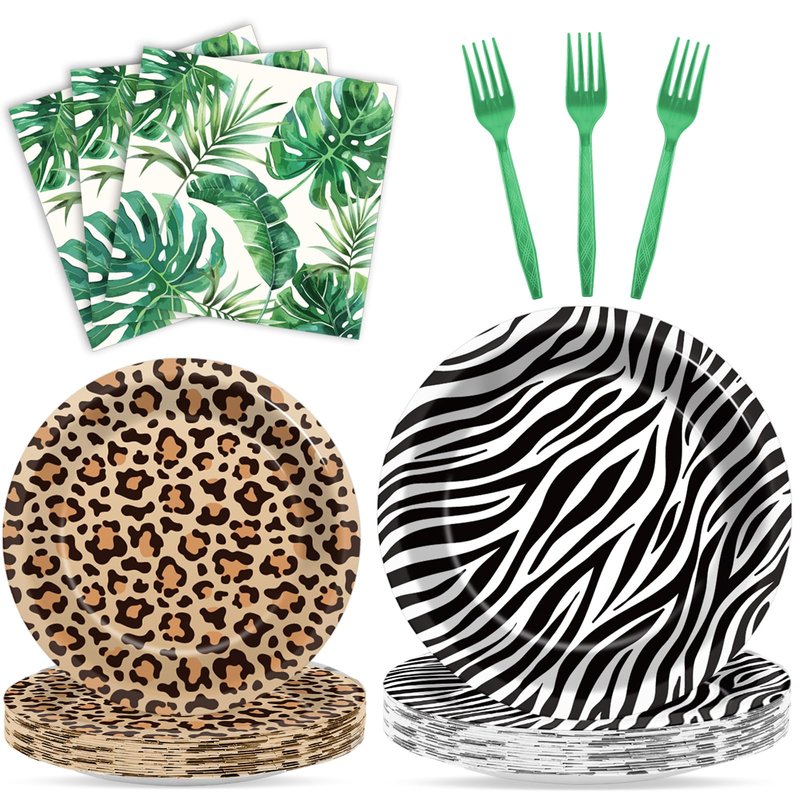 - Unique design: The unique design of this set features fun and playful elements, such as zebra stripes, leopard spots, and palm leaf patterns, making it ideal for kids and adults alike. The jungle-themed tableware brings a lively and adventurous vibe to any party, capturing the spirit of the wild.