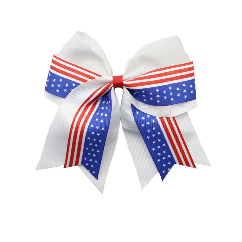 Patriotic Flag Cheer Ponytail Holder Girls Cheerleader White Big Bow-knot Hair Bow Tie For Festival Days