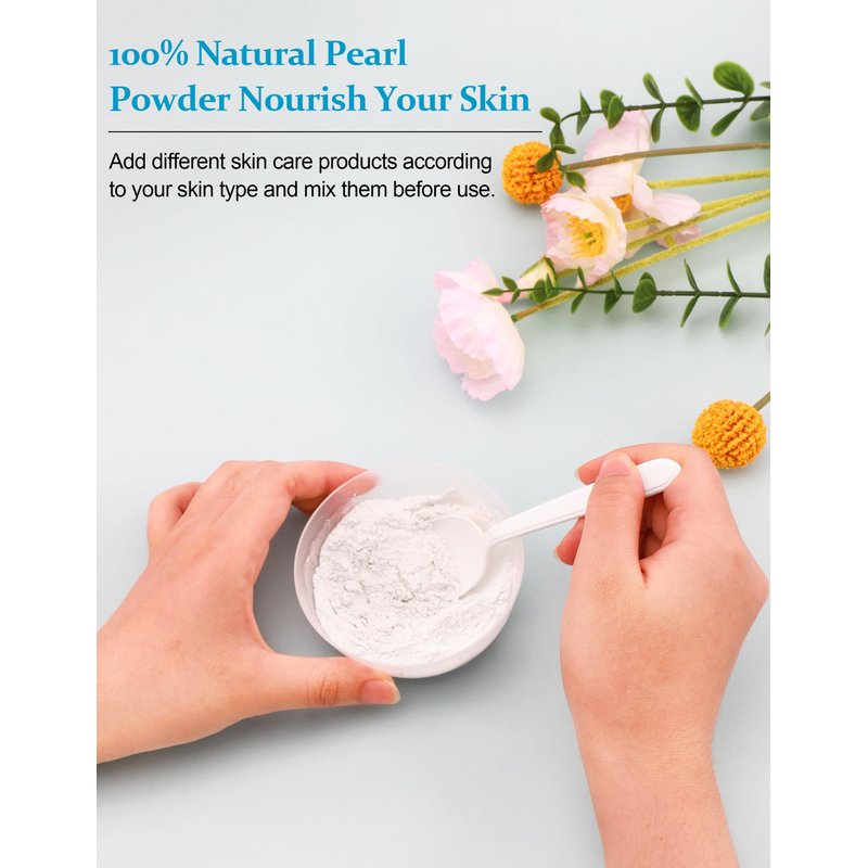 - 【DIY Skin Care & Easy to Mix and Use】You only need to take out an appropriate amount of pearl powder, mix it with water to make a paste (you can add other skin care products such as skin care essence, cream, lotion, etc. and mix them evenly), then apply it evenly on your face or other places, wait for about 15-20 minutes and then rinse with water. Continuous use can give you a radiant complexion.