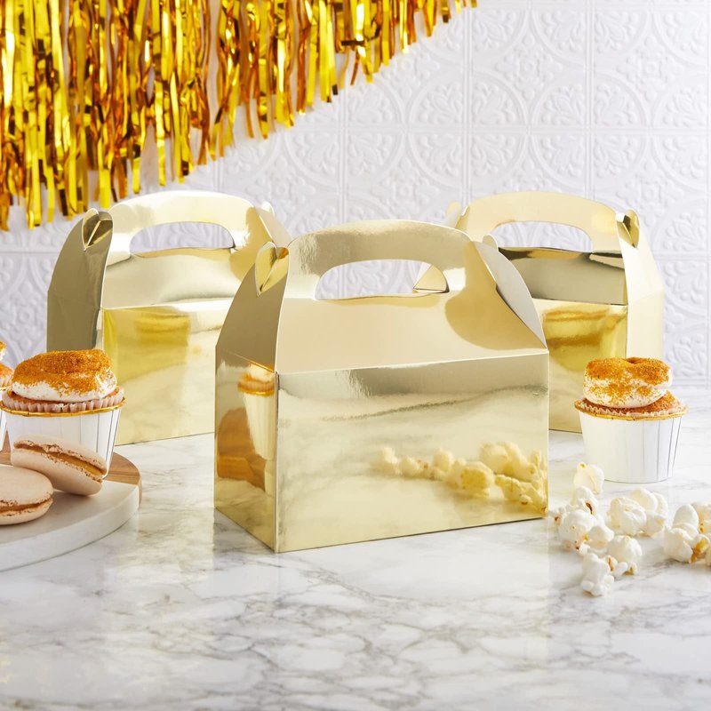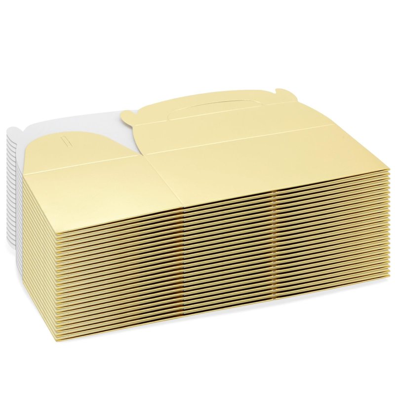 - What's Included: A bulk set of (24) gold gable boxes with handles measuring 6.2 x 3.5 x 3.6 inches each. These sturdy gift gable boxes provide an ample supply for party planning and stocking up for multiple events, ensuring both convenience and cost-effectiveness
