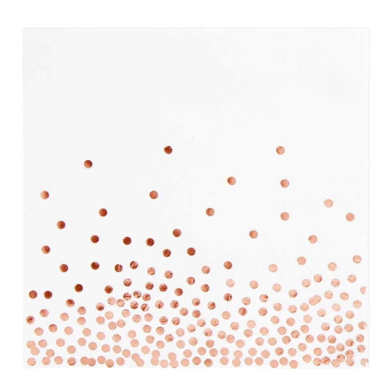 - Rose Gold Napkins Disposable: These decorative white napkins with rose gold foil confetti sparkles showcase a classic and stylish look. They are perfect for adding a touch of elegance to your party decorations for any special occasion or celebration