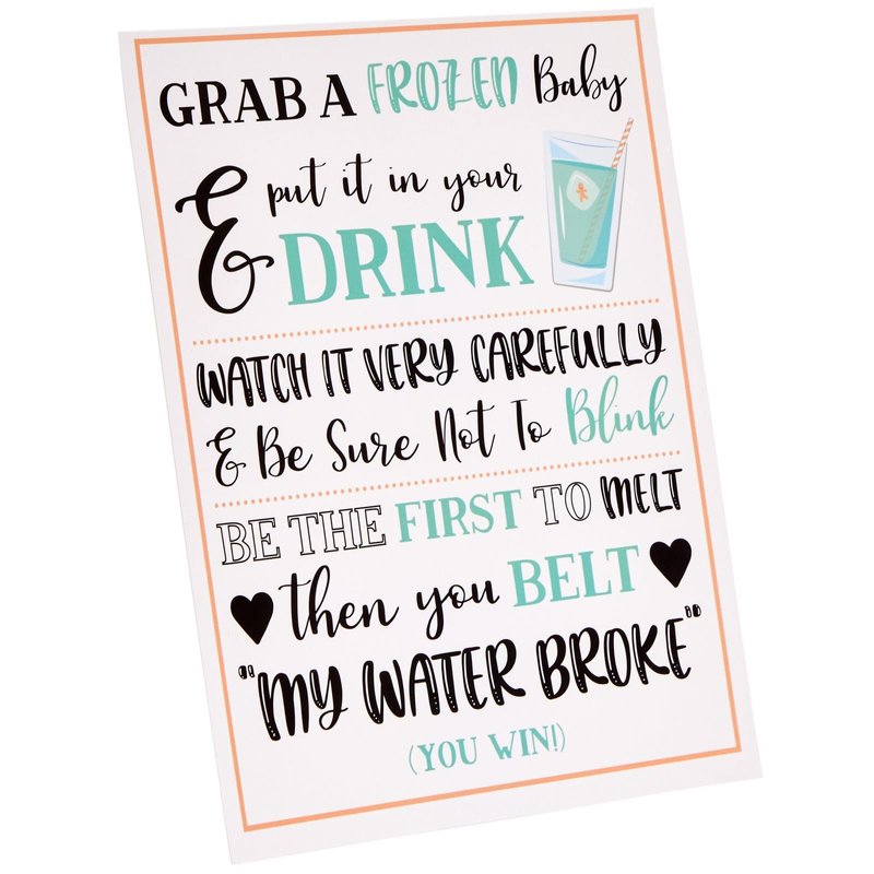 - How to Play: Grab an ice cube with a plastic baby inside, pour it into your drink, and watch the ice melt; the first to yell "My Water Broke" once the ice melts wins