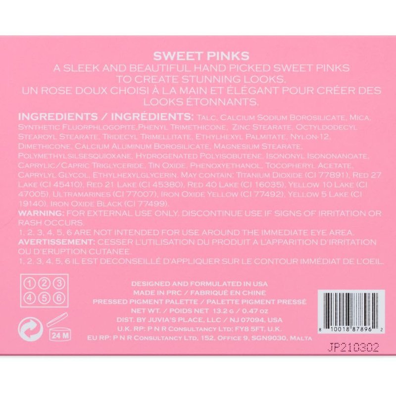 Juvia's Place Palette The Sweet Pinks - Deep Fuchsia, Soft & Sweet Pink, Shades of 6, Pressed Pigments Palette, Professional Makeup, Pigmented Pan Palette, Makeup Palette for Color & Shine