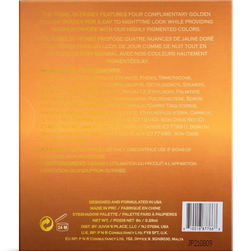 Juvia's Place Rebel Quad Honey Eyeshadow Palette - Shades of 4, Professional Eye Makeup, Pigmented Eyeshadow Palette, Makeup Palette for Eye Color & Shine, Pressed Eyeshadow Cosmetics