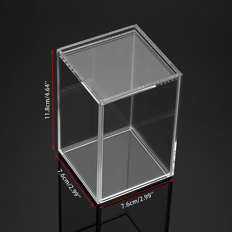 Rectangular Clear Acrylic Dustproof Show Box Place a cute ornament inside the show box, would be a perfect decoration at home or office. The case keeps our cute figurines in pristine condition, protecting them from dust, damage, fingerprints, and scratches. Clear acrylic display case features sliding door design, easy to use and no complicated assembly required. Dustproof protection model show box provides a 360° views, better displaying. It not only store and display our collectibles, but also could be used to store our DIY small item like pearls, nail art supplies. Specification: Material: Acrylic Color: Clear Overall Dimension: 7.6cm x 76cm x 11.8cm / 3" x 3" x 4.5" Package Included: 2 x Clear Acrylic Dustproof Show Box ONLY Please NOTE, Figurines Collectible are NOT included.