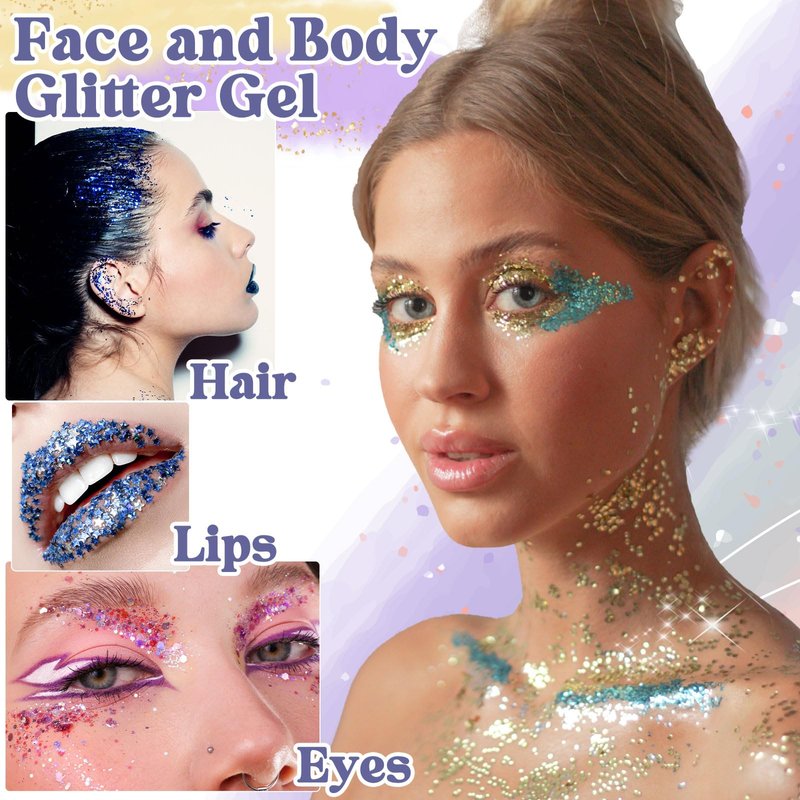 - 🎁Great Gift for Rave Party: Festival Makeup Glitter Gel is a good choice for creating bold and shiny looks for various events and for craft lovers. Great for concerts, party and festivals, adding some glitter on your beautiful body can take your look to the next level. Suitable for masquerade clubs, rave party, festivals, concerts, theme party, weddings and Halloween, Christmas, birthday gifts, stage, Mother's Day, sister's birthday.