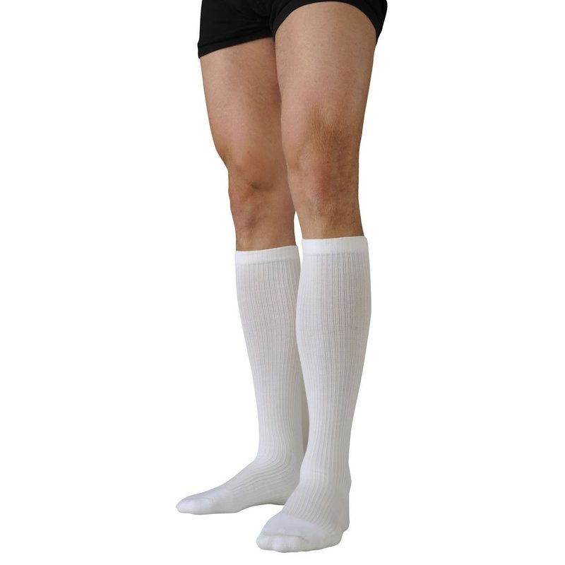 Specially designed for casual or activewear, the Juzo Basic Casual is made from soft, moisture-wicking fibers that keep your skin cool and dry. Graduated compression increases the circulation in your legs. A smooth toe seam and cushioned sole means this sock is very comfortable and diabetic friendly. Made from 65% polyester, 27% nylon, and 8% spandex in USA.