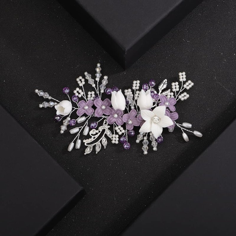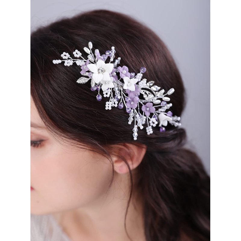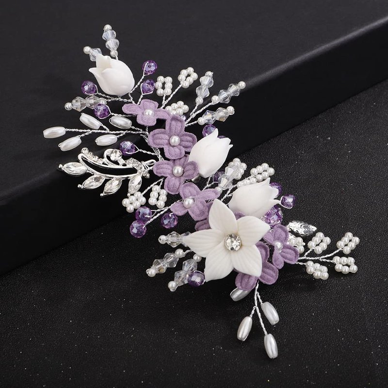 JWICOS Bridal Flower Hair Clips Wedding Hair Comb Pearl Wedding Hair Accessories for Women and Girls purple