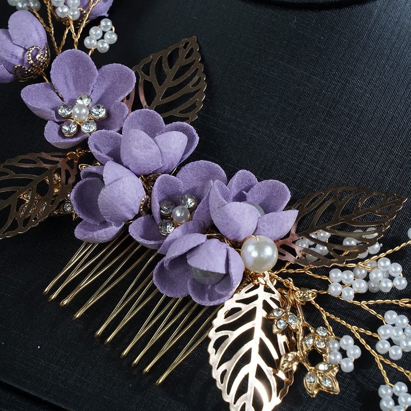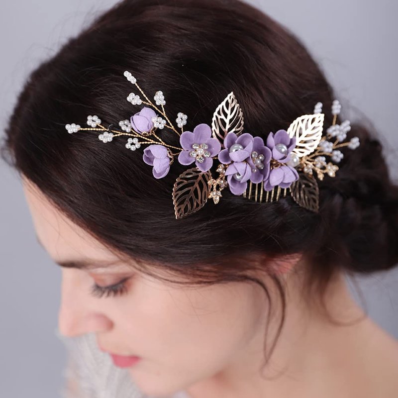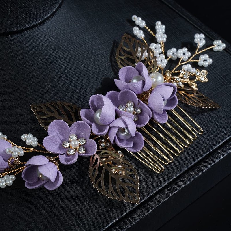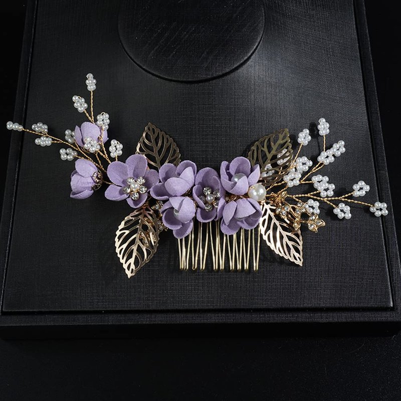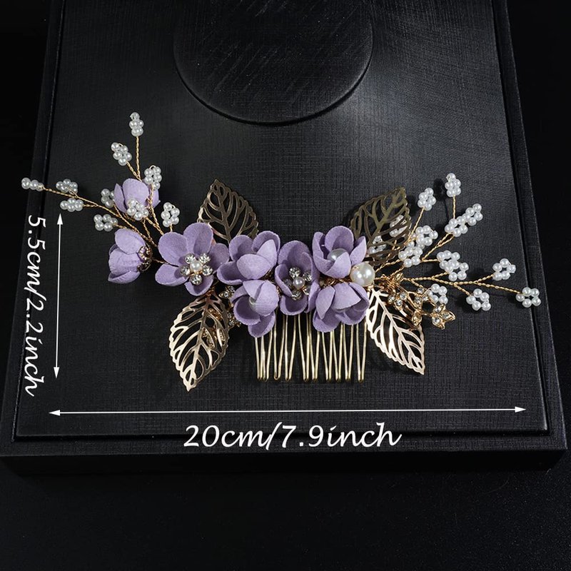 JWICOS Bride Wedding Hair Comb Flowers Pearl Wedding Hair Accessories Vintage Bridal Hair Clips for Women and Girls purple