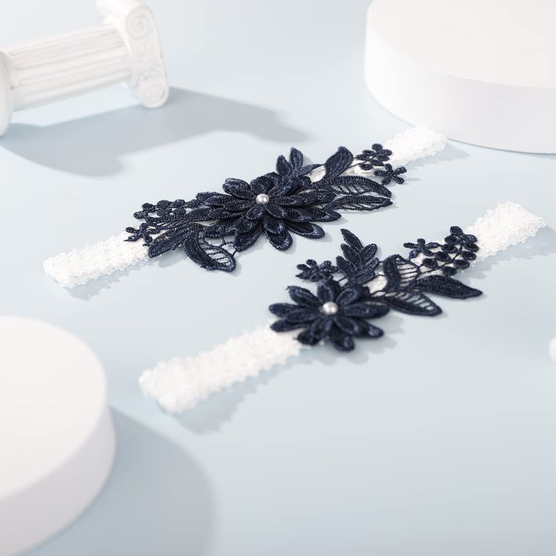 JWICOS Bride Wedding Lace Garters Stretch Flower Garter Set Bridal Garters Costume for Women and Girls (Navy Blue)