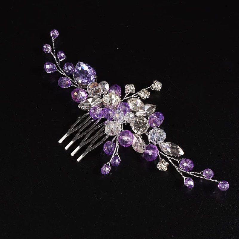 JWICOS Crystal Bride Wedding Hair Comb Rhinestone Bridal Hair Clip Glitter Wedding Hair Accessories for Women and Girls (Purple)