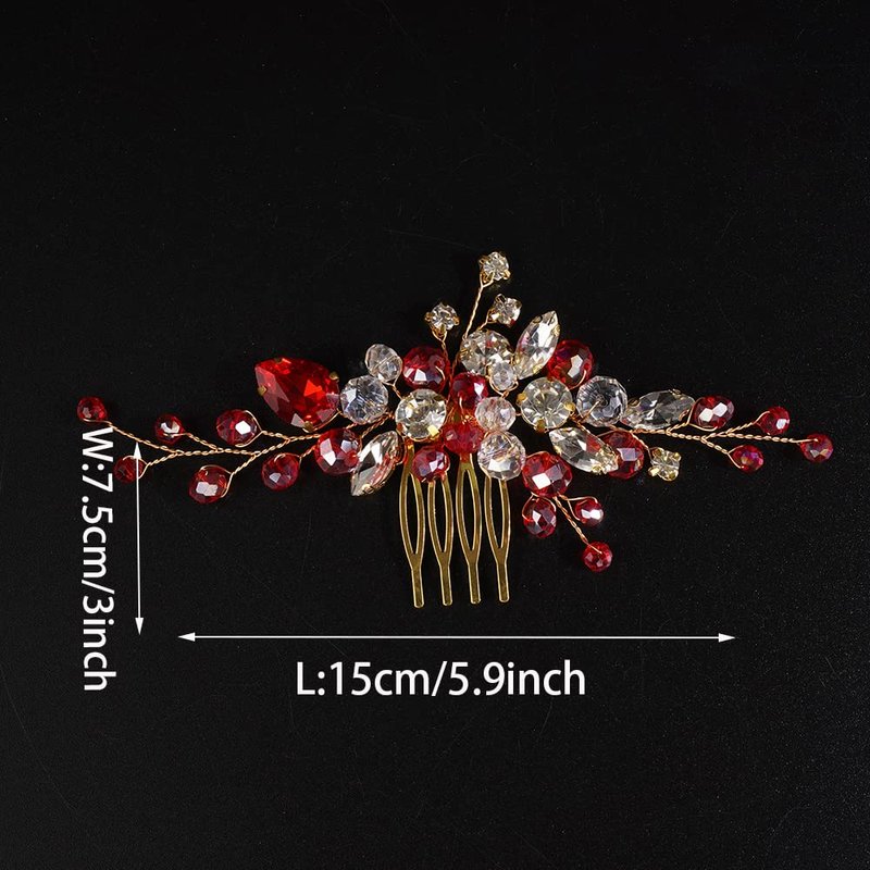 JWICOS Crystal Bride Wedding Hair Comb Rhinestone Bridal Hair Clip Glitter Wedding Hair Accessories for Women and Girls (Red)