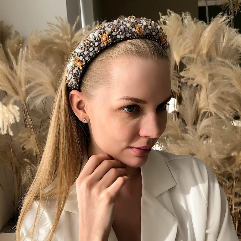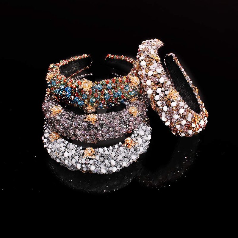 - Chunky headband made of corduroy ,alloy,and crystal beads