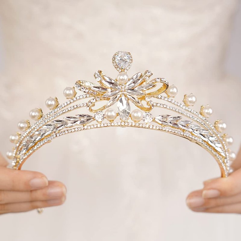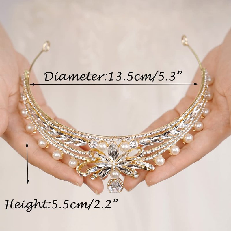 - Material: durable hard alloy, rhinestones, crystal and imitation pearl. The alloy has a diamond appearance and a hard texture for practicality and aesthetics. The tiara crown is lightweight and there is no sense of weight on the head after wearing the crown.
