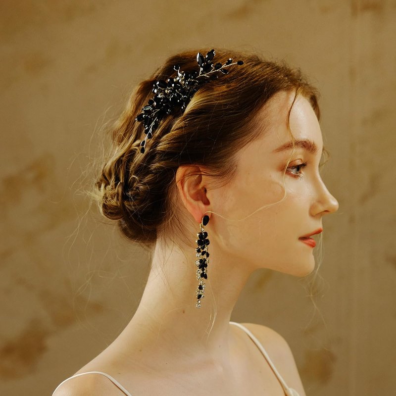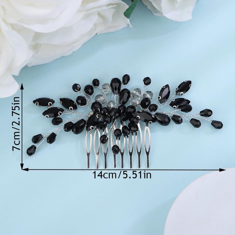 JWICOS Handmade Black Crystal Hair Comb for Wedding Bridal Hair Accessories for Women Prom Halloween Costume Bride Side Comb for Special Occasion