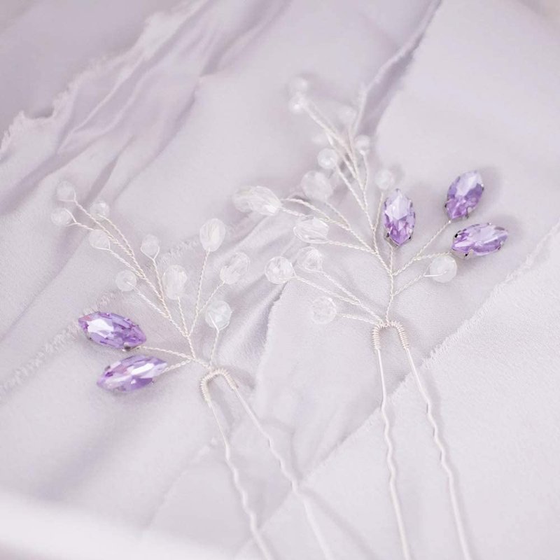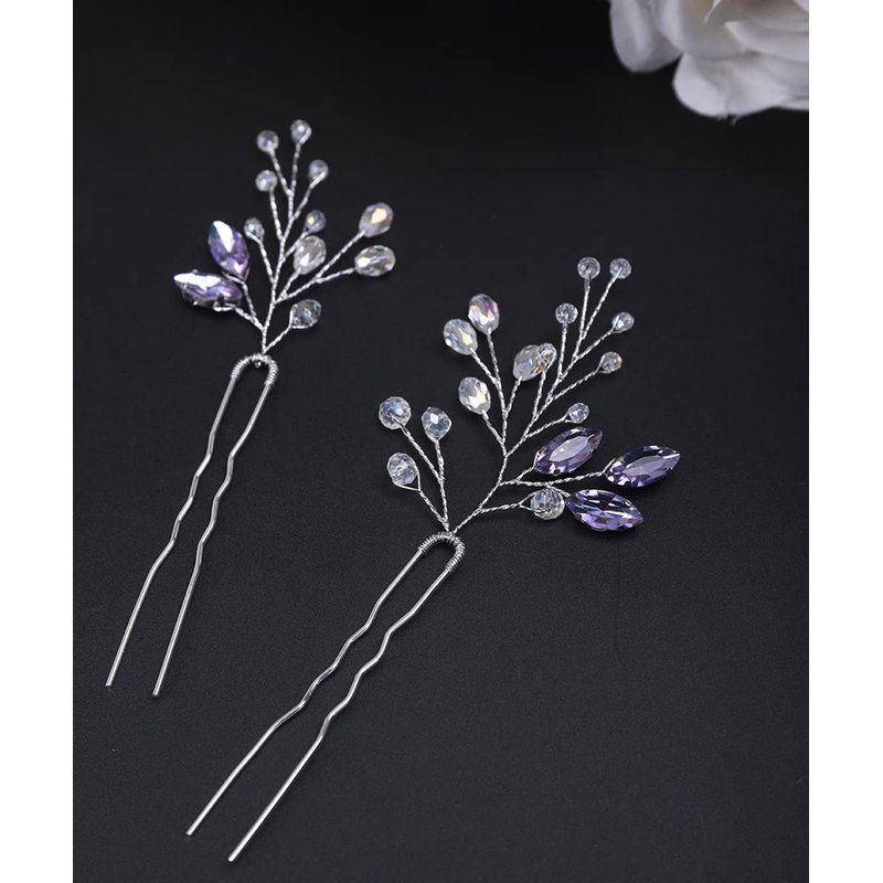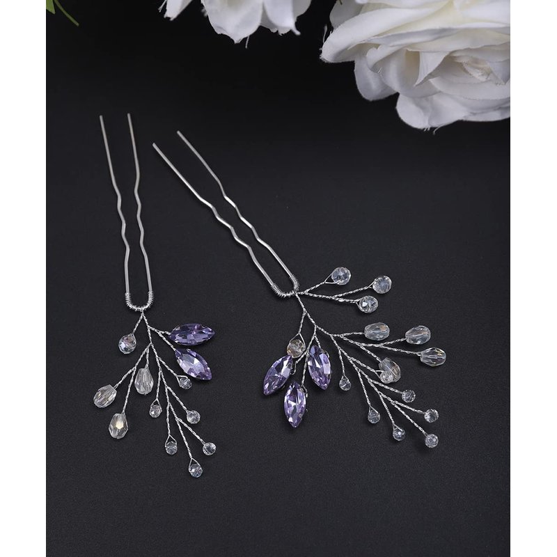 JWICOS Lavender Bridal Wedding Hair Pins Crystal Beads Hair Accessories for Brides and Bridesmaid Pack of 2