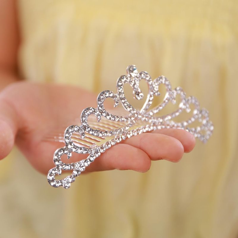 JWICOS Princess Silver Small Crystal Comb Mini Crystal Hair Comb Headband for Girls Rhinestone Comb Accessories for Birthday Party