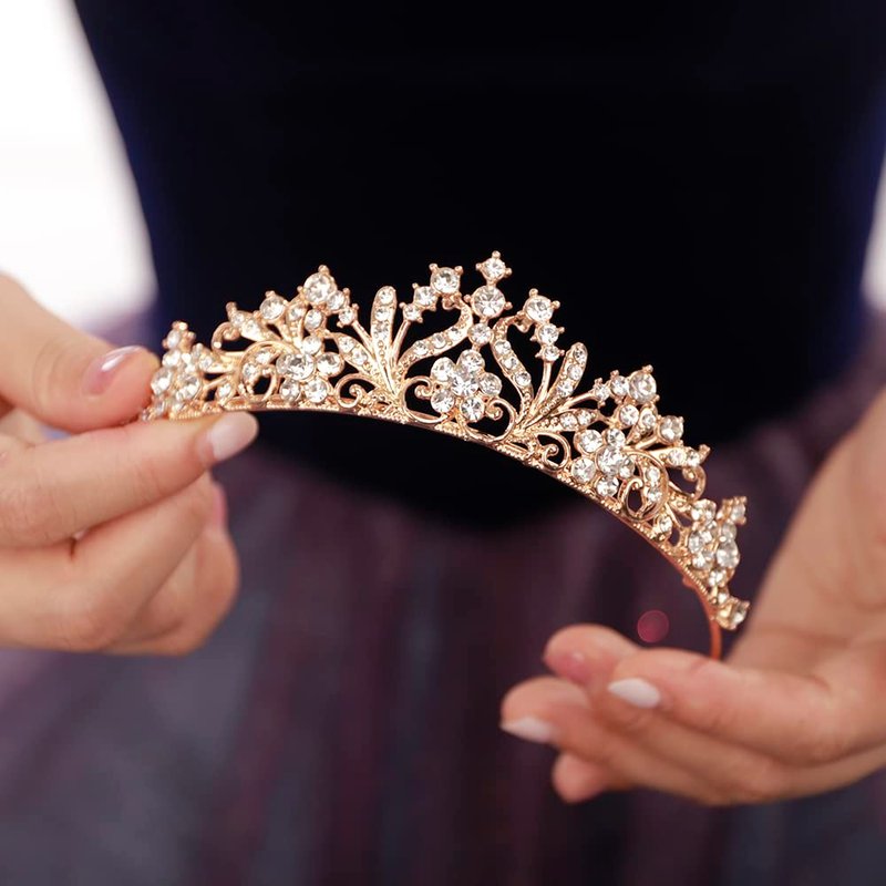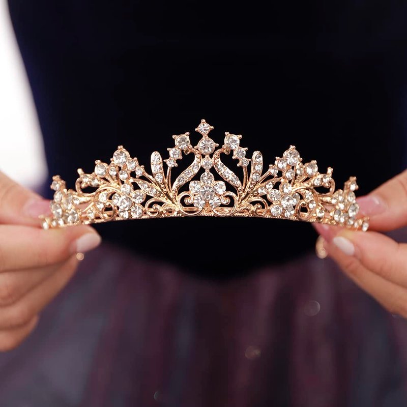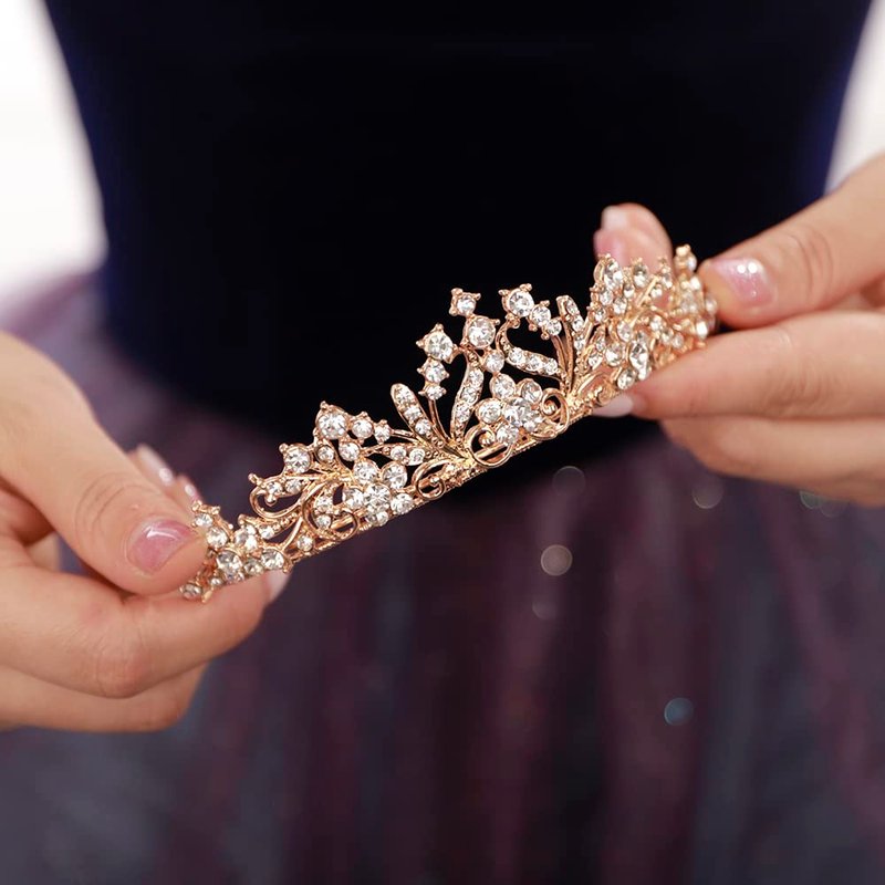 - Material: durable hard alloy, rhinestones and crystal. The alloy has a diamond appearance and a hard texture for practicality and aesthetics. The tiara crown is lightweight and there is no sense of weight on the head after wearing the crown.