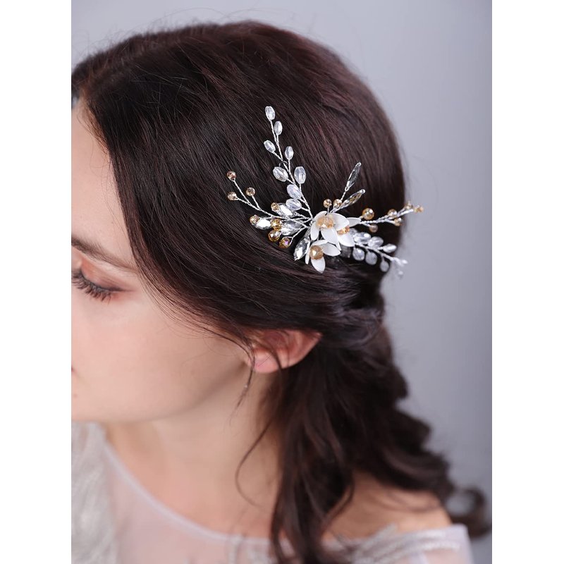 - ♥Material: Wedding hair accessories are made of crystal,alloy,beads,flower and comb,well crafted,stays securely in your hair.