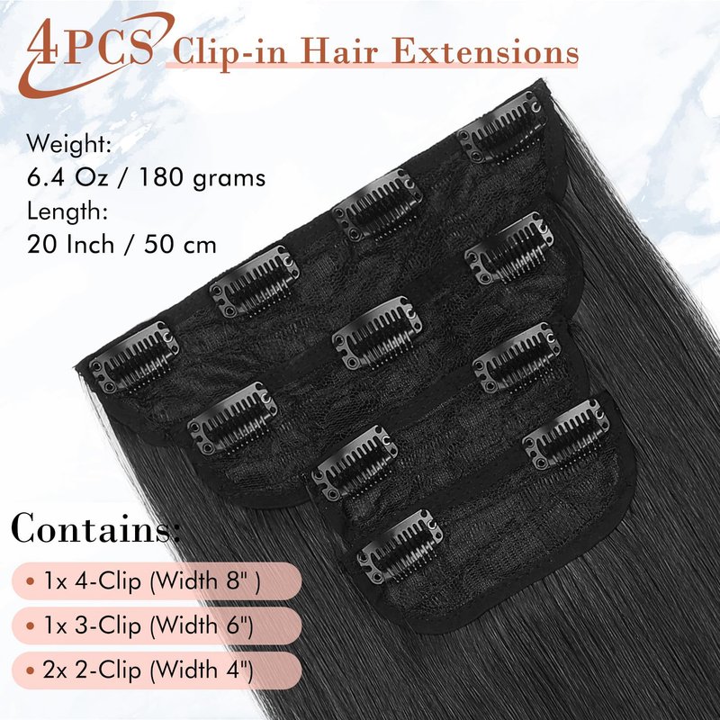 - FASHION CLIP IN HAIR EXTENSIONS: Our hair extensions are designed with a natural black long hairstyle, which is fashionable and versatile and can perfectly match your clothing and hairstyle. It can cover the entire head, enrich your hair volume, and add charm and confidence.