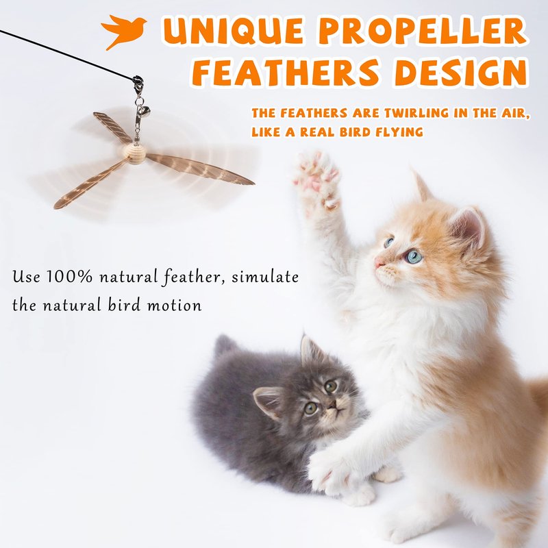 - 3PCS NATURAL FEATHERS REFILLS: The propeller action of the 100% natural feather refill is simulating the natural bird motion,it’s safe for cats to grip and bite. The 3 pack cat feather replacement for you change to last long keep your cat entertained.