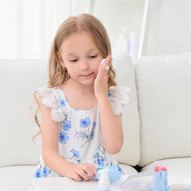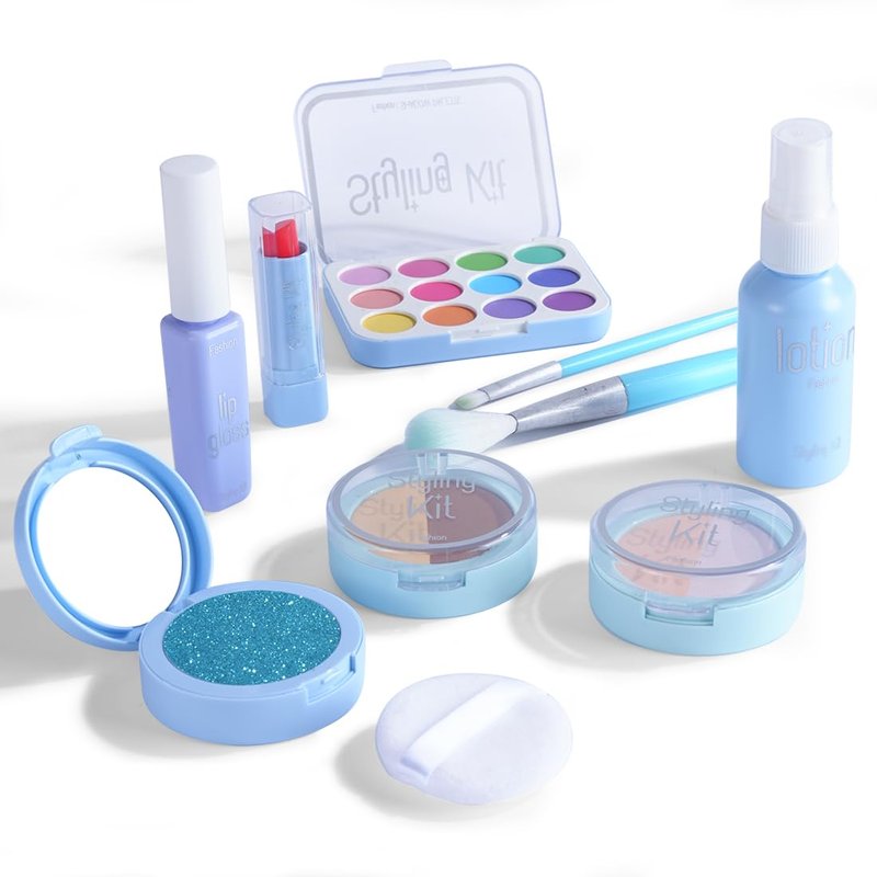 This blue pretend makeup kit is designed specifically for toddlers and kids, providing hours of imaginative fun.