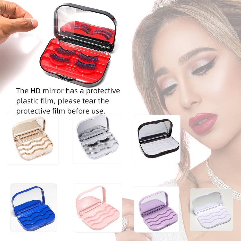 - Practical Packing:Eyelashes organizer case with makeup mirror can store and carry around 3 pari glamorous lashes. There are HD mirrors in the box so you can check your makeup at any time.