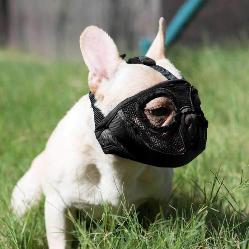 JYHY Short Snout Dog Muzzle- Adjustable Breathable Mesh Bulldog Muzzle for Biting Chewing Licking Grooming Dog Mask,Black M