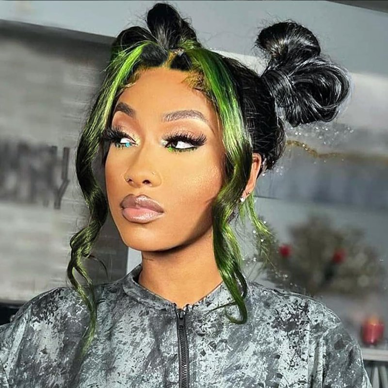 - 3.Pre-plucked, baby hair around the perimeter to give you natural looking, the 13x4 Highlight Black and Green human hair wig can be part any way and style like your own hair. High temperature resistant, you can feel free to do any hair style you like.