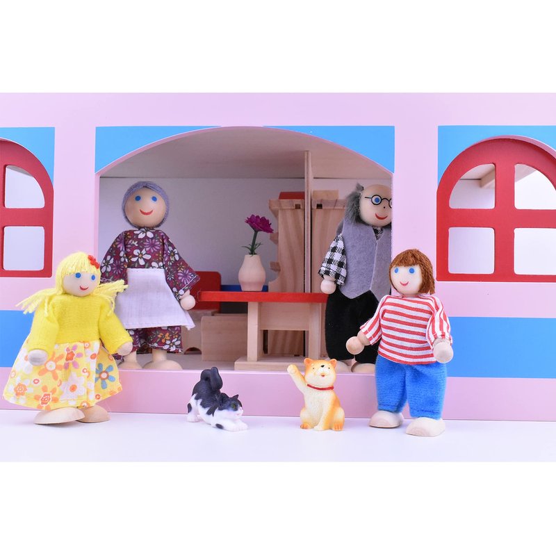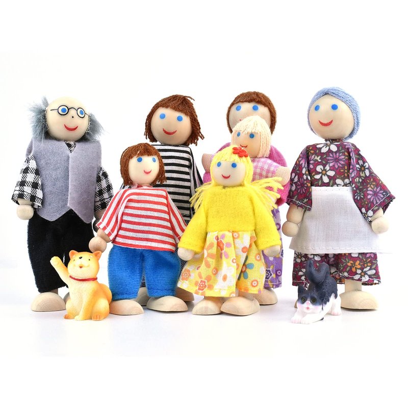 - Cute Dollhouse Family: The dolls family playset are made of high quality natural wood and can withstand years of playing. Each role will stimulate the children’s imagination and create new ways to play.