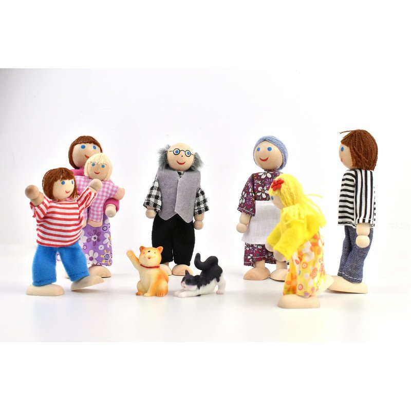 - Right Size To Play: The wooden figures people contains grandparents, mother, father, son, daughter, a little baby, a dog and a cat. The characters are about 2 inches tall to 4 inches tall, just the right size for preschoolers, toddlers to play with. Also as an ideal dolls house accessories to decorate the dollhouse.