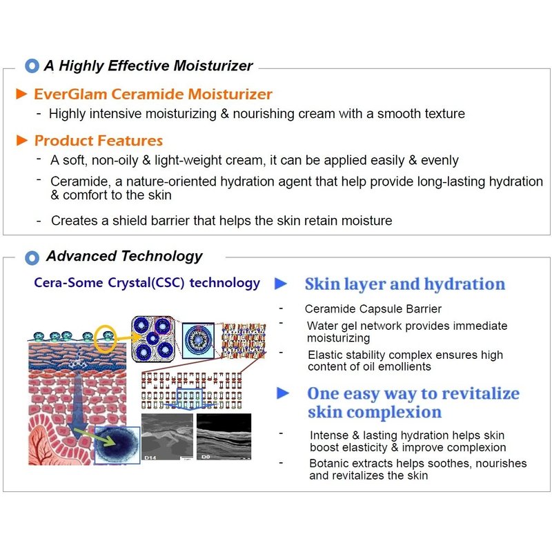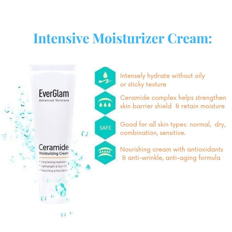 Perfect for both men & women, this K-Beauty Ceramide Moisturizing Cream by EverGlam provides ultra effective and long-lasting skin hydration without the feeling of greasiness. Hydrating the skin is only half the battle. Keeping it hydrated is the other half. Unlike other moisturizers, this cream, a result of the latest advances in skin care science, features ceramide complex that forms microcapsule barriers to help skin RETAIN moisture and achieve optimal skin care benefits for an extended time. With regular use, it diminishes fine lines and wrinkles, minimizes pores, and smoothens as well as brightens the skin.