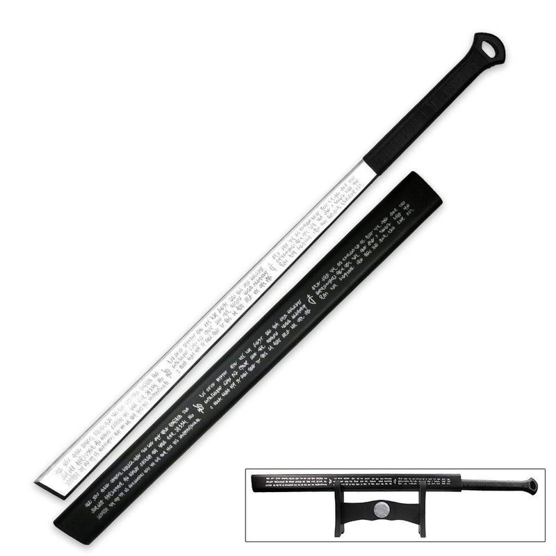 - Matching hardwood scabbard with black finish.