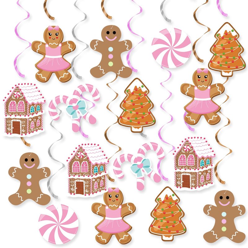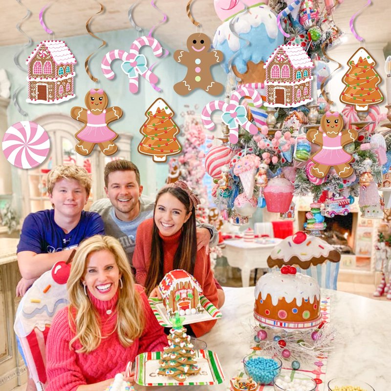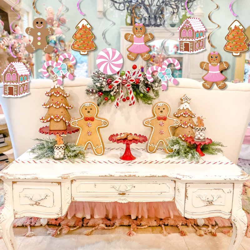 - ☃PREMIUM QUALITY & HAND-CRAFTED:Our gingerbread man theme party hanging swirls made of quality foil and hard paper card, card stork paper with fine double-sided print, durable and reusable, no fading, non-smells.Pink makes your Christmas party more special.