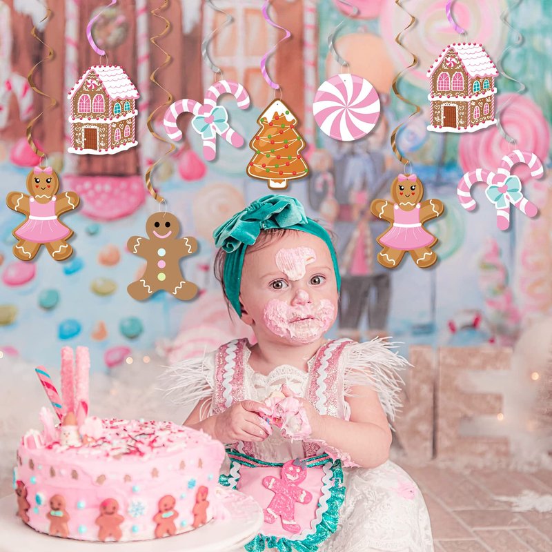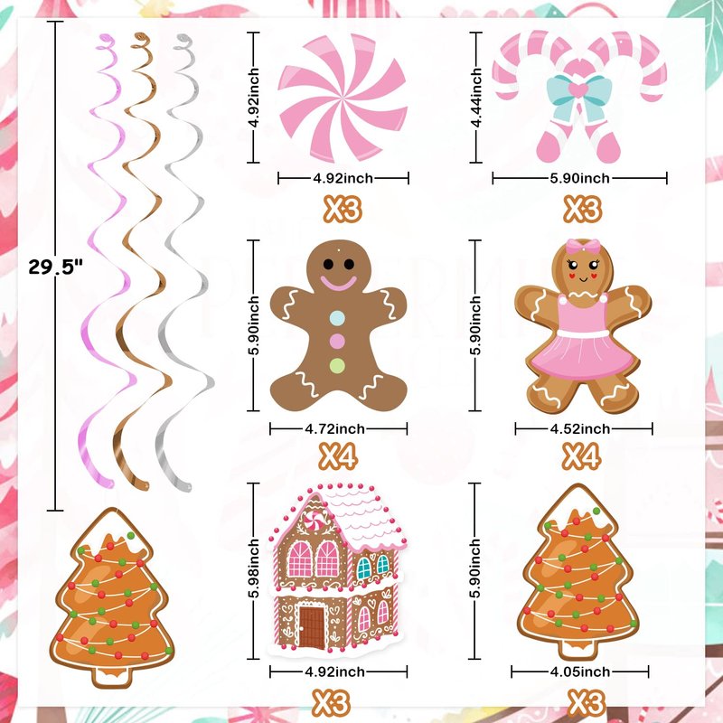 - ☃SUITABLE SIZE:Each swirl can be extended to approx 30 - 40 inches in length.Christmas Day is around the corner! Add more atmosphere to your little one's baby shower, our Gingerbread Man Theme Party Hanging Swirls will make your christmas extra special.Decorate your home with it and take pictures, creating and staying unforgettable and precious memories!