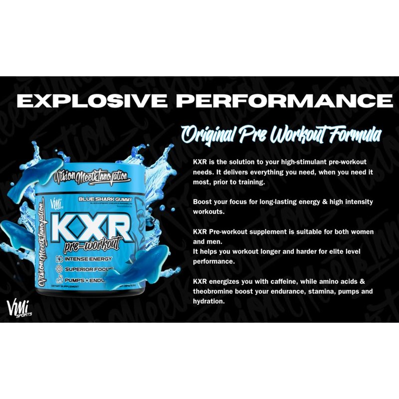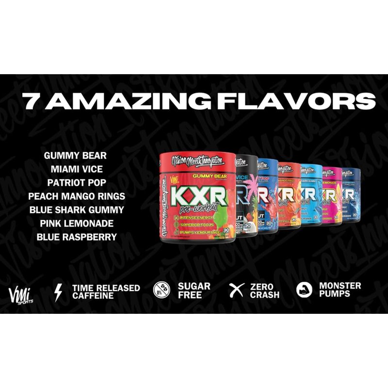 - ENERGY – 400 mg caffeine and 150 mg elevATP provides intense energy. K-XR Pre-workout supplement can be stacked with non-stimulant VMI Sports supplements like creatine.