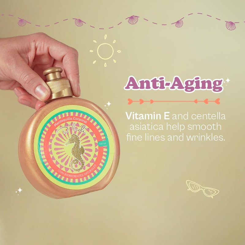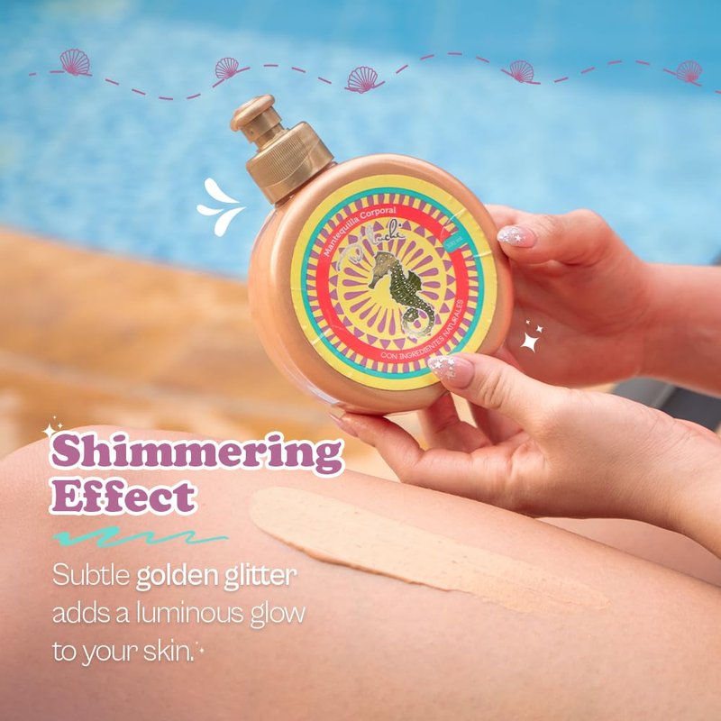 Transform your skincare routine with D'Luchi Body Butter, the ultimate solution for intense nourishment and hydration. This luxurious body butter, made in Colombia, absorbs quickly, leaving your skin visibly softer and smoother. Crafted with a blend of natural ingredients such as coconut oil and vitamin E, this body butter actively repairs and protects the skin, promoting longevity and enhancing its natural radiance. Suitable for all skin types, it's the perfect body cream to keep your skin looking young and vibrant, effectively delaying the aging process. As a special touch, our body butter features golden glitter, adding a subtle glow to highlight your tanned skin tone. Elevate your natural tan with a touch of glamour, ensuring you stand out with a luminous finish. Embrace a skincare routine that prioritizes your well-being. D'Luchi Body Butter is paraben-free and cruelty-free, providing effective and ethical skincare. With a generous 10 Oz size, this body butter offers a lavish and indulgent experience for your skin.