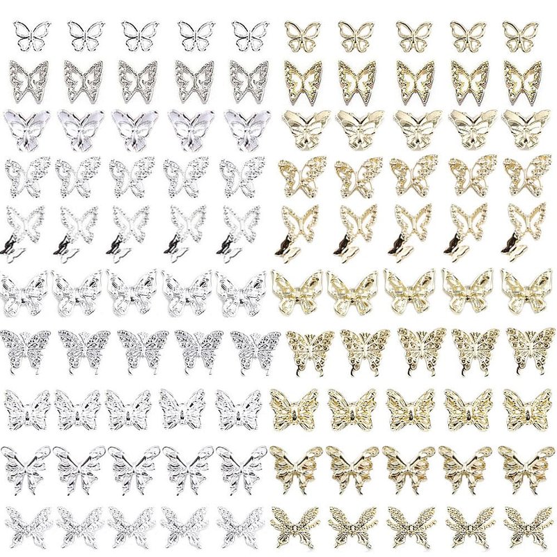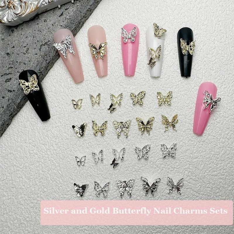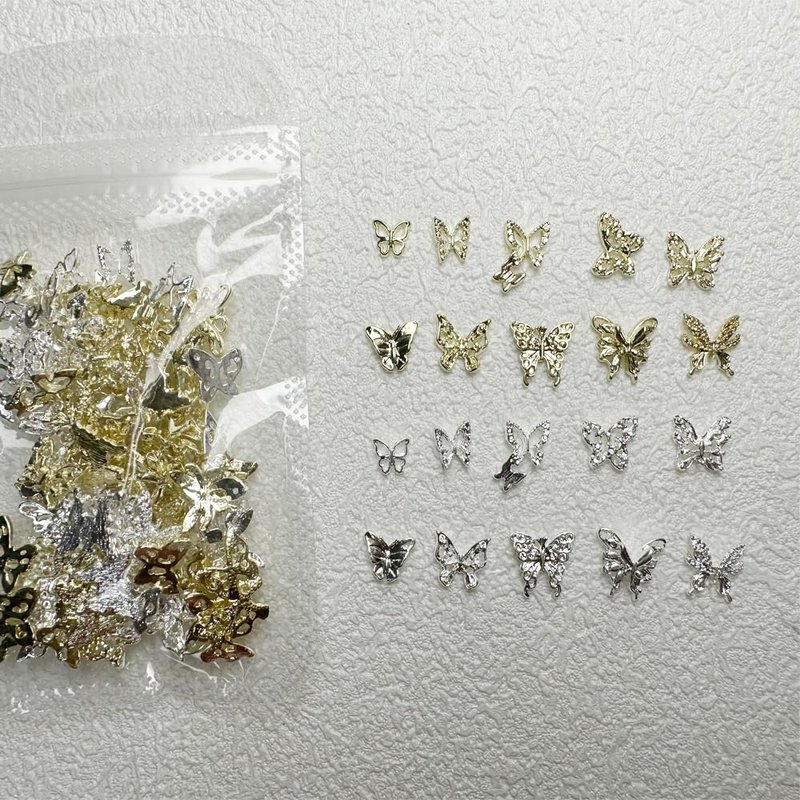 - 【100 PCS Butterfly Nail Charms】Package include 100pcs silver and gold butterfly nail charms,include 20 style butterfly charms 5 pcs per style,sufficient quantity and rich styles can meet your various needs inDIY nail art or any other handmade projects.