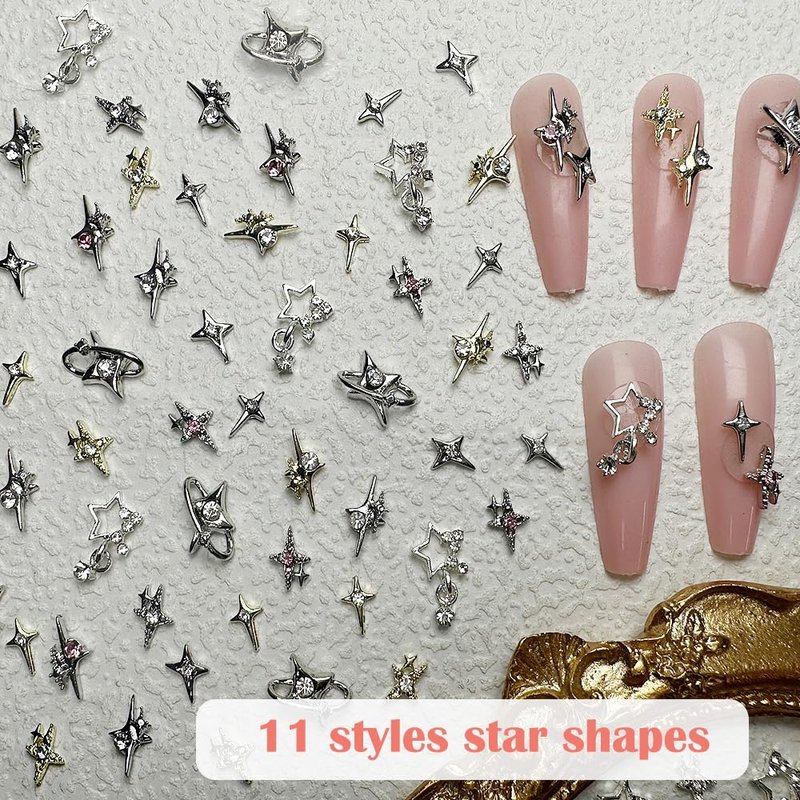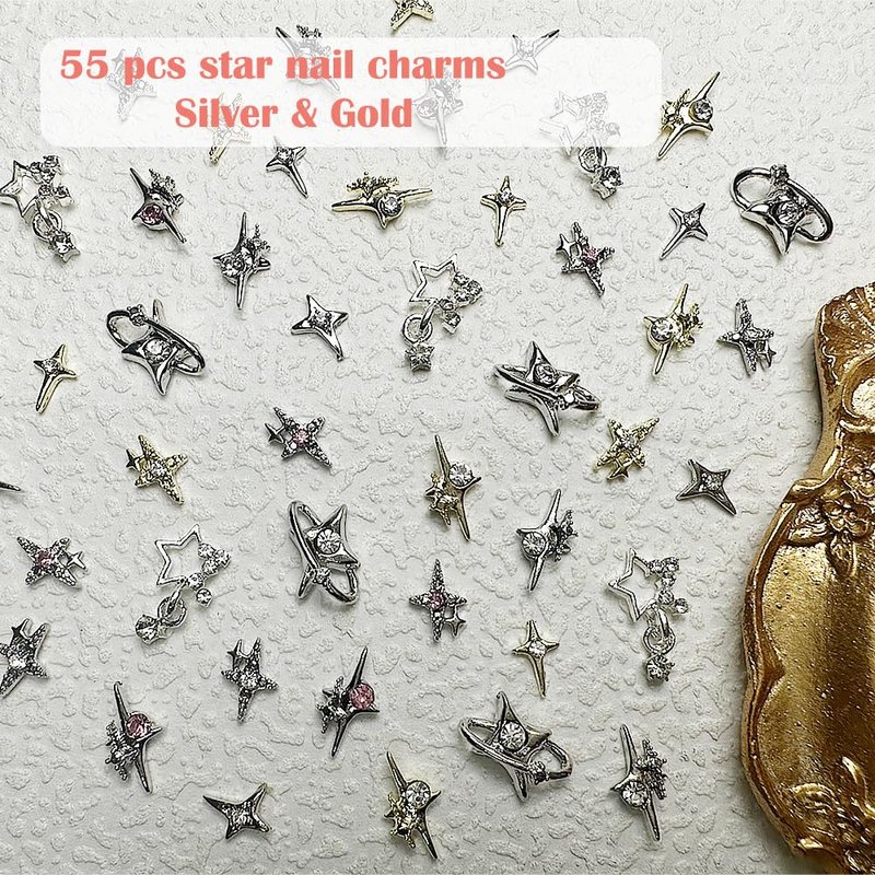 KACHIMOO 55PCS Silver Star Nail Charms Gold Star Charms for Acrylic Nails,Y2K Nail Charms 3D Alloy Nail Art Charms Y2K Nail Rhinestones Nail Supplies for Women and Girls Nail Design(11 Styles)