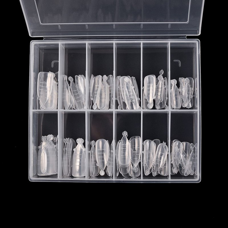KADS 120PCS Clear Full Cover Dual Nail System Form UV Gel Acrylic Nail Art Mold Artificial Nail Tips with Scale for Extension (MODEL 9)