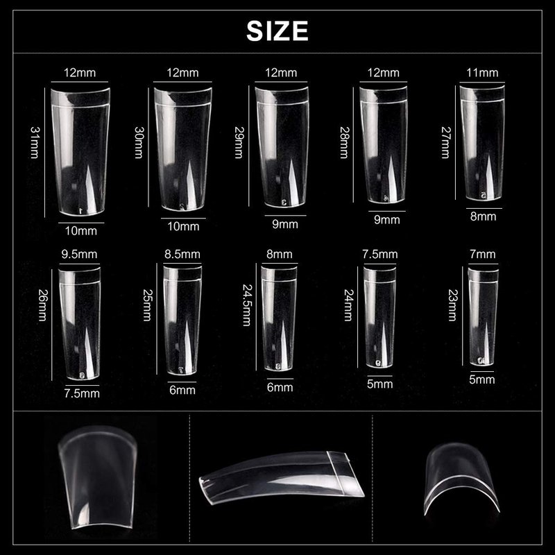 - 500pcs Nail Tips: acrylic nail tips with 10 sizes,are easy to trim,paint and apply and nice holding the color without separating or streaking. Made from high quality ABS material,No toxic, No smell, No harm to your nails or body and makes the nails durable & natural.