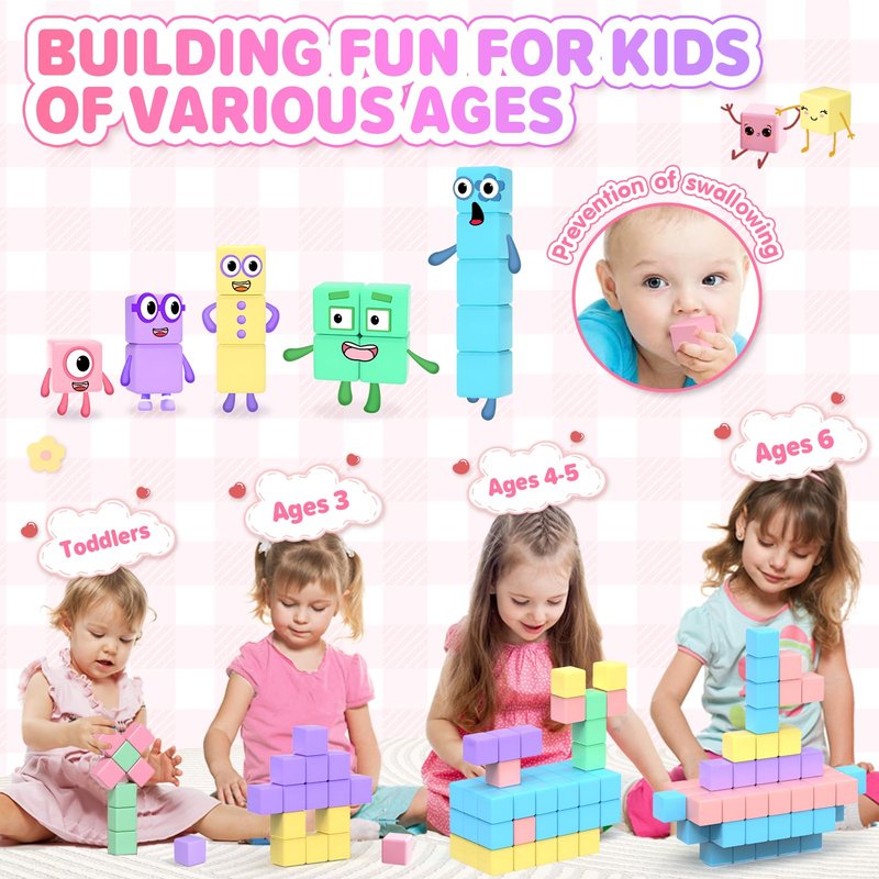 - 【Hands-on Number Building Blocks Toys】Unleash boundless creativity with our building blocks for toddlers 1-3 that allow limitless designs and innovative constructions. These magnetic cubes stimulate both the right and left sides of the brain, offering an engaging play experience that is not limited by specific themes or shapes. The magnetic building blocks are compatible with a wide range of other building sets, including popular brands, promoting versatility and enhancing the overall play experience. Kids can seamlessly integrate different pieces, expanding their imaginative possibilities.