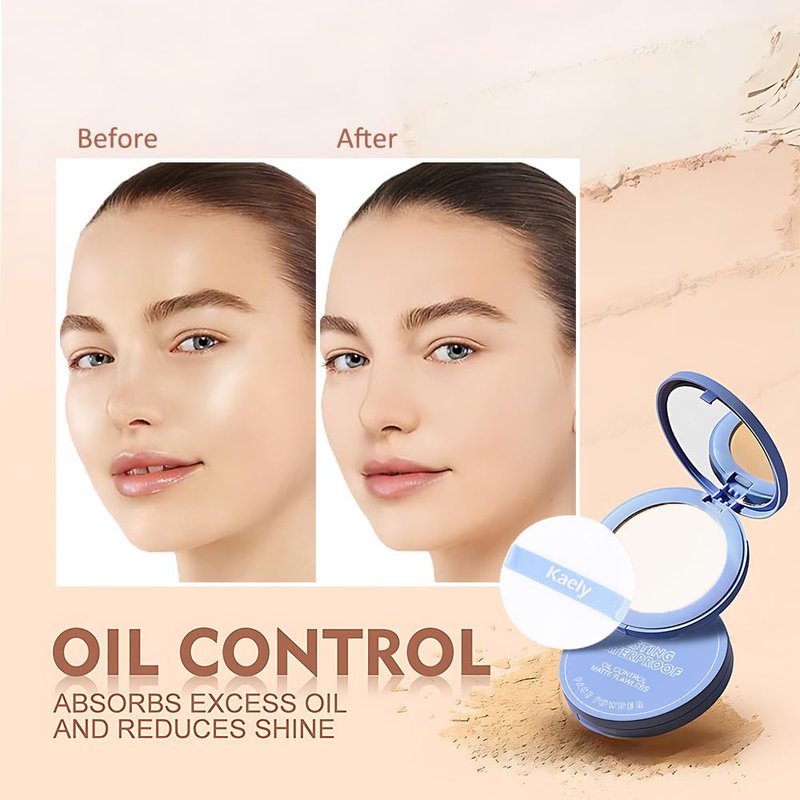 Kaely Oil Control Pressed Powder,Matte Setting Powder Compact,Face Finishing Powder Makeup,Long Lasting Waterproof Powder Foundation